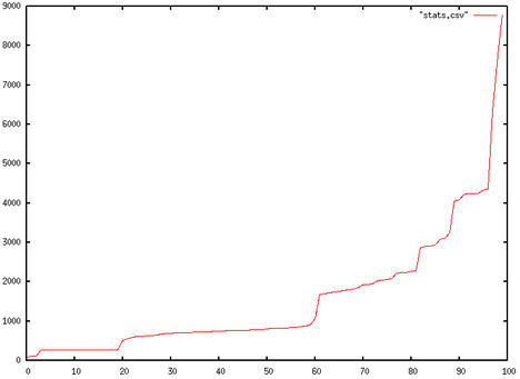 ab -e output.csv -n 10 -c 5 http://www.i-am-going-to-test-this.com/ sed 1d output.csv > stats.csv echo ‘set datafile separator “,”; plot “stats.csv”’ | gnuplot -persist