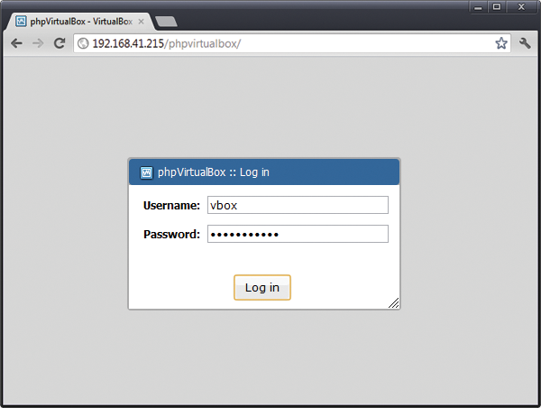 Then, you can log in to phpVirtualBox by pointing your browser at http://localhost:8080/phpvirtualbox .