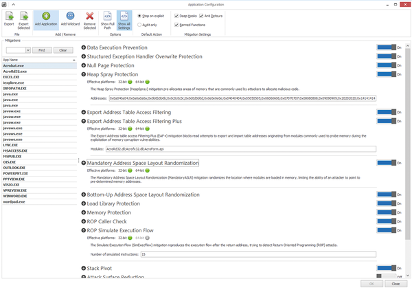 Using Microsoft's Enhanced Mitigation Experience Toolkit (EMET) [1], you can prevent attackers from exploiting security gaps in the software that you have installed on Windows computers. The security technologies used to limit damage cannot completely eliminate security risks, but instead, they meaningfully serve to complement other security measures.