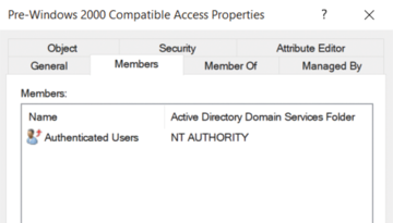 Figure 2: The Pre-Windows 2000 Compatible Access group gives users substantial read authorizations and should be avoided.