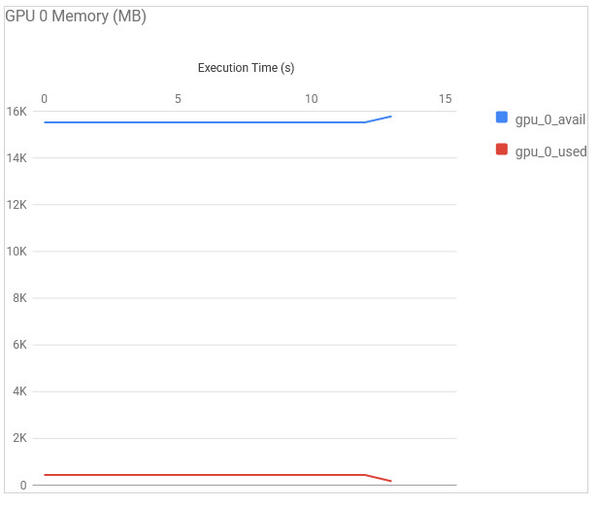 The next chart of interest, GPU utilization, is shown in Figure 3. The chart shows modest GPU load because the problem size is relatively small. Nonetheless, Remora successfully captures GPU resource usage and can help users understand how effectively their applications make use of GPU hardware.