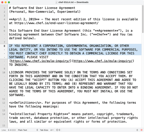 The day that extensive changes to Chef licenses took effect was April 2, 2019 (Figure 1), directly affecting those Chef users who had been using Chef normally like any other FLOSS software.