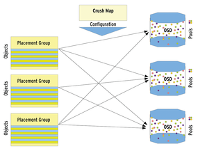 Figure 2: The elements of the RADOS universe, whose interaction is controlled by the Crush map.