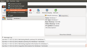 Figure 4: The Gtk GUI in RemoteBox can be started at any time. Clicking on the Connect button opens the connection to the VirtualBox server.