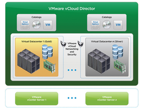 Figure 2: vCloud Director is the hub of the VMware cloud stack and creates a pool of freely distributable cloud resources from virtualization resources (from vmware.com).