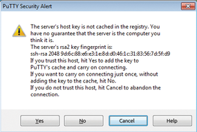 Figure 2: Like any SSH client, PuTTY shows the RSA host key of the remote host.