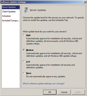 Figure 2: The settings for server updates must be set to at least Medium and the update settings for the clients to High.