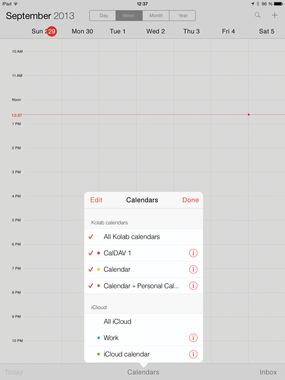 Figure 7: The calendar on an iPad. iRony helps owners of Apple devices connect to Kolab the first time.