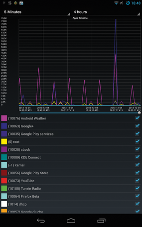 Figure 1: Only one monitoring app among many: Network Log sniffing network traffic on a rooted Android (here a Nexus 7) and creating useful stats.