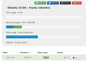Figure 1: The container is being managed here with the help of LXC Web Panel