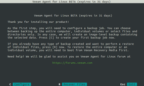 Figure 1: The Veeam Agent for Linux user interface takes you through the individual steps in a terminal.