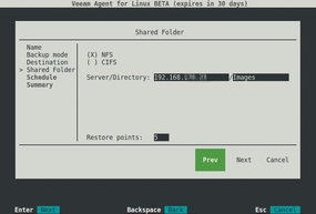 Figure 3: Backups can be stored locally or remotely via NFS or CIFS.