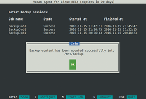 Figure 5: When recovering data, the Veeam agent mounts the recovery files on the system under /mnt/backup/.