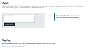Figure 5: In the last part of the homepage, users either leave a comment or learn more about testing software under Yesod.