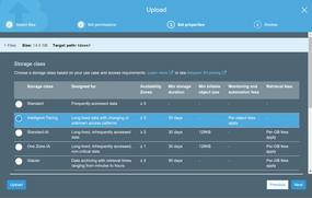 Figure 1: When uploading data to S3, the storage class can be selected via the user interface.