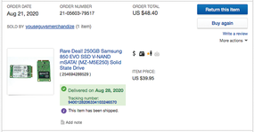 Figure 2: Procuring upgrade parts on eBay – in this case, a 250GB Samsung 850 SSD.
