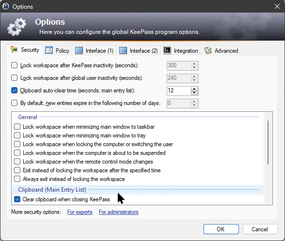 Figure 2: The KeePass options let you customize the solution to suit your needs.