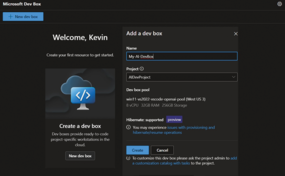 Figure 2: Create a dev box and add dev box project settings.