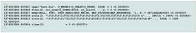In this command line, the executable is named ex1, and the strace output is sent to the file strace.out with the -o option. You should look at the strace just out of pure interest (it’s not that hard to follow). For this simple code, strace outputs a number of lines, but I'm interested in the subset that corresponds to the I/O portion of the application. I'm going to grab the strace output lines that begin with the open() function for the file test.bin and end with the close() function (Figure 1C).