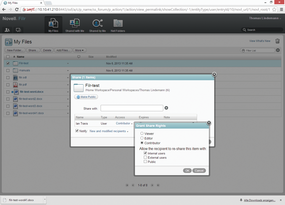 Figure 7: Filr differentiates in terms of share rights between the type of permission (read, write, contribute) and between target groups (internal and external users and guests).