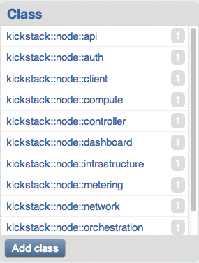 Figure 4: After assigning all node roles, you can view the results in a pane on the left in the Puppet Dashboard's Class overview.