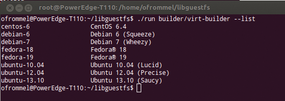 Figure 1: Virt-builder displays a list of the Linux systems it can install.
