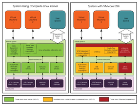 Figure 2: Architecture comparison for a running Linux kernel and a VMware kernel.