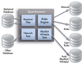Figure 1: SpamAssassin uses a variety of databases for analyzing and assessing email. You can come to grips with unwanted advertising email using a complex set of rules.
