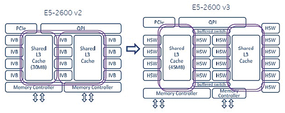 Figure 1: Xeon E5 v2 to Xeon E5 v3 architectures (courtesy of EnterpriseTech