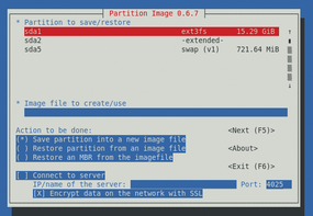 Figure 2: The Partimage tool uses Newt to create its user interface (Wikipedia, GPL).