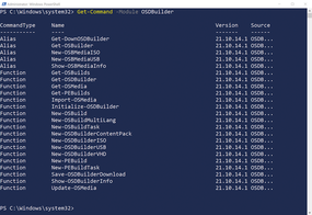 Figure 1: The OSDBuilder module adds new cmdlets, displayed here with Get-Command.
