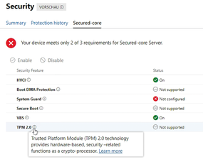 Figure 1: Secured-core functions can be managed in the Windows Admin Center.