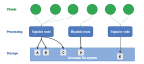Figure 2: Isolation of processing from storage in Cloud Bigtable.
