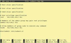 Therefore, admins should only edit the /etc/sudoers file with the visudo tool created expressly for this purpose. Among other things, this editor checks the syntax of the configuration file. Contrary to what the vi in the name implies, the underlying editor in some distributions today is nano (Figures 1 and 2). On Ubuntu, the tool let through obvious typos in our lab, so you should not rely too heavily on it.