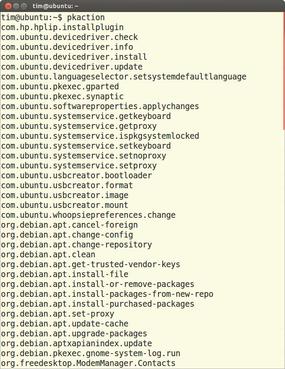 The Action= line in Listing 2 is followed by the name of the permitted action. The pkaction command reveals what actions PolicyKit knows. Be careful; the list output by this command can be long, depending on the distribution (Figure 4).