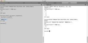 Figure 1: The second transaction (right) references a previously created snapshot; it thus sees the same data.